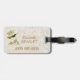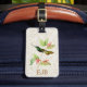Etiqueta personalizada del equipaje con un ilustracion del vintage del colibrí magnífico - un colibrí del verde y del oro se encaramó en una planta tropical con las flores rosadas coralinas, en un fondo ligero de la textura del mármol del oro.