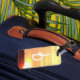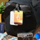 El diseño presenta la imagen de una hermosa puesta de sol como fondo de las iniciales que proporciona. Las iniciales se muestran en una impresión en blanco clara y fácil de leer y se vinculan entre sí. ¡Nunca más confundas tu equipaje!