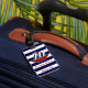 Esta etiqueta náutica del equipaje del velero parecerá linda y de moda si vuela a la playa o cruza los mares. Esta marina de guerra de las características del diseño y rayas blancas con un rojo, un blanco y un velero de la marina de guerra. Personalizar con su nombre y dirección.
