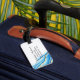 Etiqueta personalizada de equipaje azul y oro