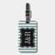 Etiqueta personalizada de equipaje de rayas verde azuladas y blancas. Elegante. Elegante diseño de rayas azules verde azuladas con nombres monogramados blancos de letras iniciales de pareja. Gran idea de regalo para marido y mujer, parejas casadas y recién casadas en luna de miel. Monograma de 3 letras con estriado. Color del fondo del personalizable.