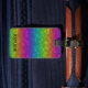El diseño presenta un degradado intenso de arcoiris con chispas. Puede ser personalizado con su nombre y datos de contacto.