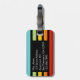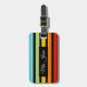 Una elegante etiqueta para el equipaje que presenta un patrón festivo de rayas de color arcoiris en su propio color de fondo con campos de fondo de texto de color.