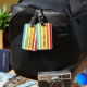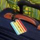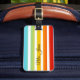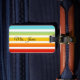 Una elegante etiqueta para el equipaje que muestra un patrón festivo de rayas de color arcoiris en su propio color de fondo.