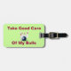 Usted puede personalizar el nombre y dirección en la parte de atrás de esta etiqueta del equipaje de los bolos. Los colores son rojos amarillo verde y las características del diseño una silueta de una bola y de los pernos de bolos. Perfeccione para los que amen el rodar. Átelos a su bolso del equipaje cuando usted viaja.