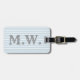 La sirsaca azul clara y blanca perfectamente de muy buen gusto rayó la etiqueta del equipaje con un monograma adaptable gris para el viajero de mundo con un caso de wanderlust.
