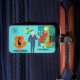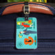 ¡Miel, soy hogar! ¡Esta etiqueta retra adaptable del equipaje de los pares del dibujo animado de la era espacial le tendrá el sentir envidioso de los pares del dibujo animado en una etiqueta del equipaje! Las características del diseño un fondo de la turquesa con ladrillos verde azulados y un verde verde oliva, chimenea del cono. Un gato liso, negro se está sentando en una silla anaranjada lisa. Hay un trullo, reloj de pared del starburst y una lámpara pendiente de dos niveles en sombras de amarillo, del azul y del negro. Frente y centro, hay un hombre de negocios distinguido, de martini-swilling en un juego azul y un lazo anaranjado. A su lado, su bomba rubia de una esposa del trofeo está llevando un vestido rojo del meneo y está sosteniendo una bandeja de martinis. ¡Va-va-va-voom! El lado opuesto de la etiqueta del equipaje tiene un fondo de la turquesa y un un montón de sitio para su información de contacto.