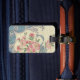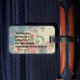 Coloqúese aparte de las otras etiquetas de equipaje con este pañuelo del vintage que ofrece cintas azules de la pizarra y las flores rosadas de la margarita. Personalice la parte posterior con su información.