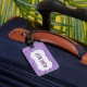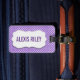 fondo de gingham púrpura con etiqueta elegante grabado en relieve biselada