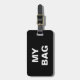 Graciosa etiqueta de equipaje en blanco y negro con 'Mi bolsa' escrita en ella