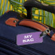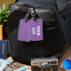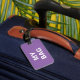 Graciosa etiqueta de equipaje morado con 'Mi bolsa' escrita en ella