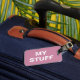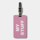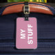 Graciosa etiqueta de equipaje rosa con "Mis cosas" escrito en ella