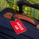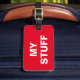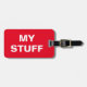 Graciosa etiqueta de equipaje rojo con 'Mis cosas' escritas en ella
