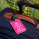 Graciosa etiqueta "Mantengan el equipaje tranquilo" para mujeres y chicas. Diseño personalizado para bolsas de viaje y maletas. Diseño de tipografía vintage de personalizable para viajeros. Rosa caliente o cualquier color personalizado. Crea tu propio humorístico: mantente tranquilo y sigue con la parodia. El color de fondo y el texto se pueden cambiar. Humor de viajes/chiste.