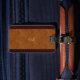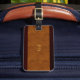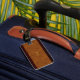 Para el ejecutivo en tu vida. Grano de madera con etiqueta de equipaje de monograma de cuero y oro por Bizeboy