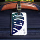 Para Maletas Hoja tropical azul, etiqueta de equipaje blanco