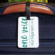 El estado de las huellas digitales de la Alianza Mascota de Michigan y la etiqueta de equipaje One Voice, beneficiando el bienestar animal en Michigan.