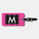 Etiqueta rosada y negra del equipaje. Personalice el monograma. Letra conocida de Personalizable para el diseño adaptable de los bolsos y de las maletas el | del viaje para los viajeros. Rosa o cualquier color de fondo de encargo. Idea elegante linda del regalo para las mujeres y los chicas.