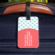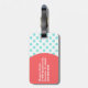 Etiqueta elegante del equipaje de la diversión del verano hecha en un aquamarine con los lunares blancos. El frente de la etiqueta tiene una silueta coloreada coral de una langosta, y la parte posterior tiene un área de texto coralina circular, a la izquierda. El texto blanco está listo para personalizar. Grande para el equipaje y más.