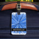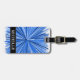 Las características del este del equipaje diseño de la etiqueta un modelo con las líneas colorearon los varios tonos del azul que estallaban hacia fuera de un punto central. También ofrece un nombre personalizado en el frente, y personalizó los detalles del contacto en la parte posterior.