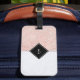 Elegante etiqueta de equipaje minimalista. oro Rosa (rosa) y mármol gris, monograma negro y blanco, fuente moderna. Moderna, moderna y de diseño.