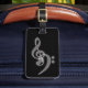 Una elegante etiqueta de equipaje con temas de música blanca y negra - trébol blanco y arcos de bajo contra un fondo negro texturado. Amor musical. Personalízalo con tus datos en la parte posterior =)