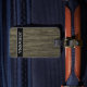 El diseño de esta etiqueta para el equipaje presenta un estilo rústico con un aspecto de madera marrón. También cuenta con un nombre personalizado en la parte delantera y detalles de contacto personalizados en la parte posterior.