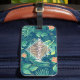 La etiqueta de equipaje de follaje tropical presenta un diseño de hojas tropicales ilustradas en un patrón ininterrumpido. Estos diseños incluyen elementos de verde, azul, rojo, naranja y amarillo, hojas tropicales, palmeras, plantas de monstera y flores. Los productos incluyen una plantilla para el personalizar con su nombre o mensaje. Haga clic en personalizar y personalizar para cambiar el fondo a cualquier color.