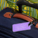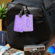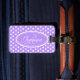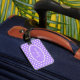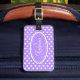 Chicas modernos etiqueta de equipaje gráfico con motivos de polka púrpura brillante con motivos de punto. Perfecto para vacaciones y viajes. Agregue su nombre y su nombre inicial al principio de la etiqueta y personalizar el reverso de esta etiqueta con sus detalles de nombre y dirección. Diseñado exclusivamente por Sarah Trett.