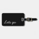 Esta etiqueta en blanco y negro dice "Let's Go" en la parte delantera y tiene la información de contacto de su personalizado en la parte posterior. El color puede cambiarse a su elección.