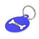 Placa de identificación colorida de la diversión hecha en azul, en el frente, con un hueso blanco del dibujo animado y un amarillo sólido, en la parte trasera de la etiqueta. Personalice el texto negro con la información de su perro. Grande con nuestro pañuelo del perro, cuello del mascota y correo a juego.