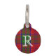 Placa de identificación con monograma de la diversión con el frente hecho en el modelo rojo, blanco, azul, y verde de la tela escocesa de Grant del clan, con un monograma grande de la letra del blanco uno. La parte posterior de la etiqueta se hace en rojo, con el texto blanco. Personalice el monograma y el texto en de nuevo a juego sus necesidades.