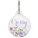 Para Mascotas Placa redonda floral morada