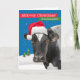 Esta dulce vaca con un sombrero rojo de Santa Claus al aire libre en la nieve es una forma divertida de desear Feliz Navidad a su nieta.