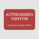 Las características del este de la etiqueta del estilo del visitante diseño conocidas humildes de la insignia el mensaje "AUTORIZARON AL VISITANTE", y el nombre de compañía adaptable o el otro mensaje de encargo. Una insignia conocida del estilo de la etiqueta como esto se podría quizás utilizar para indicar que una persona es una huésped o un visitante conocida y autorizada en un negocio o un lugar de trabajo. [~Z0000358]
