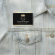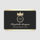 Moderna y elegante etiqueta de nombre negro profesional con un elegante monograma de la corona dorada, nombre y profesión.