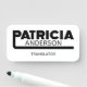 El nombre Patricia con apellido y cargo de personalizado. Los colores se pueden cambiar.
