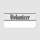 Este clásico diseño de placa de estilo de etiqueta de nombre de borrado en seco reutilizable para voluntarios incluye el mensaje "Voluntario". También incluye un área donde el nombre de un voluntario podría escribirse usando un marcador de borrado seco. Es posible que se use una insignia de estilo de etiqueta de nombre como esta para mostrar que una persona es voluntaria o asistente autorizada en un evento. [~Z0000359]