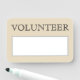 Este viejo diseño de placa de estilo de etiqueta de nombre de borrado seco reutilizable para voluntarios incluye el mensaje "VOLUNTEER". También incluye una sección en la que se puede escribir el nombre de un voluntario o asistente utilizando un marcador de borrado en seco. Una insignia con el estilo de una etiqueta de nombre como esta podría ser usada para mostrar que el usuario es un voluntario oficial o asistente en un evento. [~Z0000359]