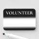 Este tradicional y nostálgico diseño de insignias estilo mordaza de borrado seco del voluntario presenta el mensaje "VOLUNTEER". También incluye un área donde el nombre de un voluntario podría escribirse usando un marcador de borrado seco. Una insignia como esta podría ser usada para mostrar que el usuario es un voluntario oficial o asistente en un evento. [~Z0000359]
