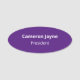 Personalice esta etiqueta de nombre de color púrpura ovalada con su nombre de empleado, título profesional u otro texto personalizado. Está disponible con un fiador de respaldo magnético (no se utiliza con marcapasos) o con un pasador de seguridad hacia atrás. Diseñado en color púrpura y de otro tipo (todos los colores son personalizable). Disponible en otras formas. El tamaño normal de la etiqueta de nombre oval es de 3 pulgadas x 1.25 pulgadas. No hay cantidad mínima de pedido ni cargo de instalación. NOTA: El pin back es el valor predeterminado, por lo que si desea el respaldo magnético, asegúrese de realizar la selección en la página del producto.