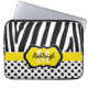 Esta moda de 13" y estriberas de cebra y palo de polka personalizadas de moda amarillas, negras y blancas tiene una funda de ordenador portátil con cajas de texto para que añadas tu nombre y monograma. ****POR FAVOR envíame un correo electrónico si quieres un tamaño MÁS GRANDE, ya que seleccionarlo por tu cuenta causará que el diseño y los cuadros de texto se deslice. Si necesita ayuda para personalizar esto con su propia información, envíe un correo electrónico a niteowlstudio@gmail.com para obtener ayuda.