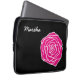 Un rosa dramático decora esta manga de ordenador portátil. Personalizar este bolso de portátil cambiando el nombre para adaptarlo a sus necesidades. Este bolso de portátil es genial para mujeres, chicas, adolescentes, profesores, escuela, trabajo, universidad, etc. El diseño es de arte original.