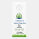 Percha de puerta de servicio de césped con diseño azul y verde.