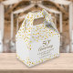 Elegante caja de favores del 50 aniversario de boda dorado con corazones dorados repartidos por sus nombres, fecha especial y mensaje de agradecimiento conjunto en la tipografía moderna. ¡Una forma perfecta de agradecerles a sus huéspedes! Diseñado por Thisisnotme©
