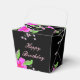 caja de favores color rosa rosa con flores, el texto rosa claro de feliz cumpleaños puede ser personalizado para cualquier ocasión especial, o el texto es extraíble. Ideal como favores de fiesta de cumpleaños, gracias de evento corporativo, o por cada lugar de configuración para su boda. Personalizar el fondo negro para que se adapte a tu celebración especial.