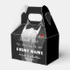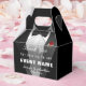 Una caja de regalo de esmoquin negro con una rosa roja hace un diseño muy elegante para una caja de favores matrimoniales, para cumpleaños, fiestas de soltero y soltera y otros eventos especiales.
