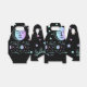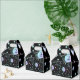 Caja de regalo o caja de favores con diseño celeste con soles, lunas y estrellas en colores pastel sobre un fondo negro.