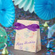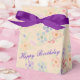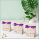 Bonito pequeña caja de favores de estilo de tienda con flores, personaliza el texto púrpura o el texto es extraíble. Ideal para fiestas, bodas, cumpleaños o eventos corporativos. Púrpura, rosa y colores pastel suaves. El partido de diseño favorece con su propio mensaje personal.