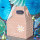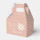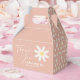 Cajas de favores en estilo boho con arte floral de margaritas y color rosa.